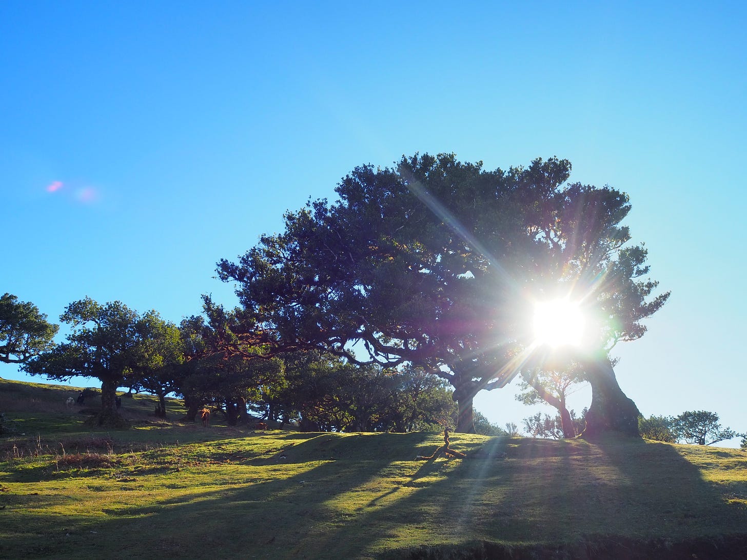 The Fanal forest was, high up on the Paul de Serra plateau of the island, typically misty. We found it drenched in gorgeous sunshine that morning. The shadows of the old laurel trees were stretched across the grass like a yawn. 1200m above sea level, far above the last of the eucalyptus, this area of ancient trees felt like it was defying nature. Nature always has a mind of its own, a power and magic not fully understood by reason. These trees were a miracle and as with all ancient trees I was fascinated and captivated as I wandered amongst them, softly touching the moss on their trunks. They were full of character with gnarled branches and low boughs, buttress roots and hollows. I wondered what stories they held.